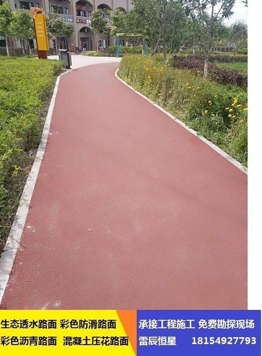 彩色防滑路面通過道路顏色的不同,提示駕駛者在規定的路面上行駛,從而避免了不同車輛的混行;提示駕駛人員前方的危險路段,并通過提供高摩擦力的面層來實現很好防滑效果;駕駛員駛入上述路段可以提前降低速度,并在緊急情況下,縮短剎車距離,避免惡性交通事故。彩色路面防滑系統是一種樹脂基路面防滑系統,包括特殊配方的樹脂基黏合劑和各種不同規格的骨料,以準確的數量涂敷于各種路面。此種路面不僅對景觀美化和道路安全方面有著明顯的改進,同時因其面層耐磨耗,可以對普通路面起到延長壽命的作用。彩色防滑路面的引入,對改善我國交通惡化的現狀,有著積極深遠的意義。